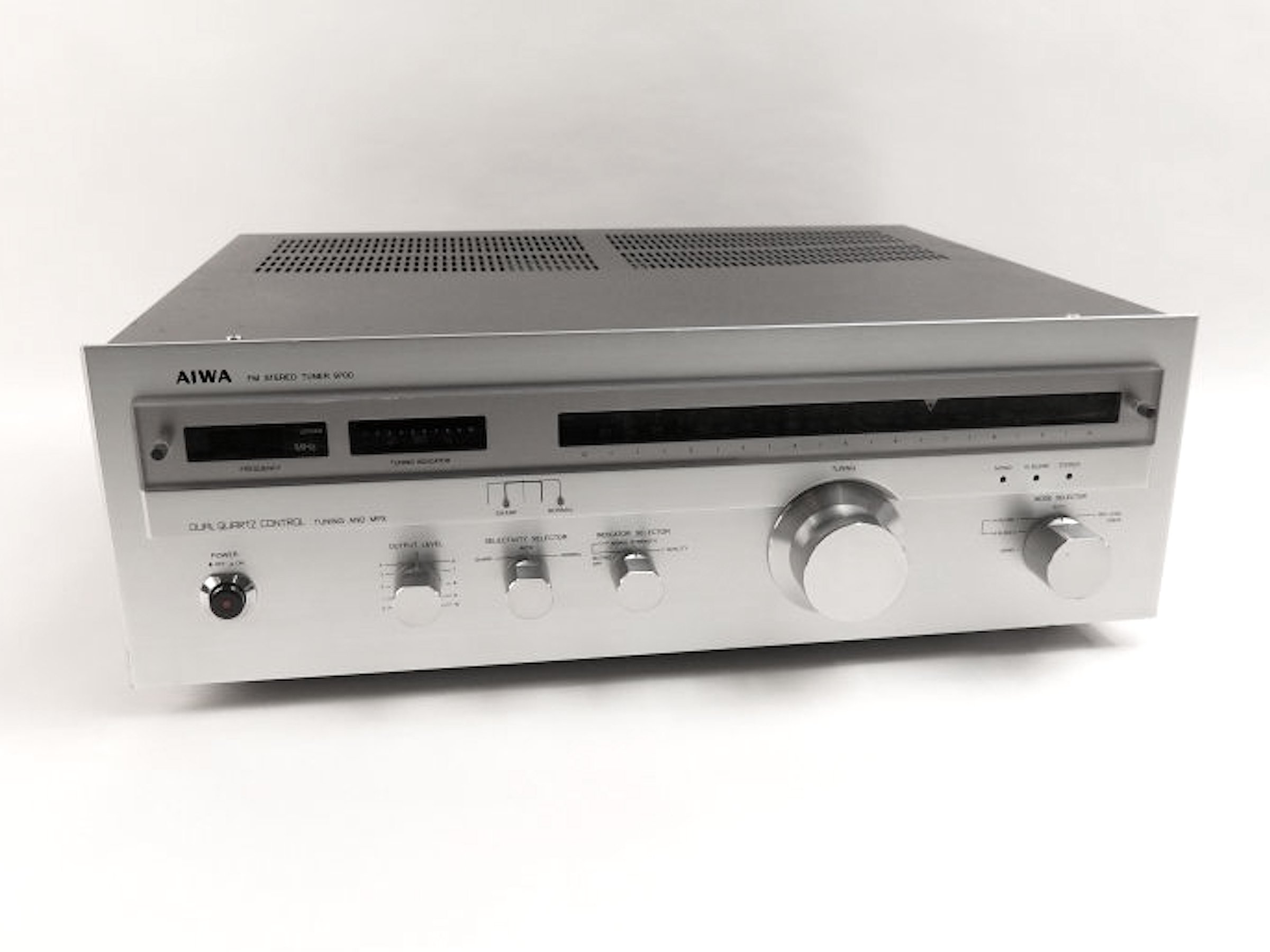 Tuners are rarely objects of desire. Even the best examples of the breed struggle to arouse passions like, say, high end turntables or monster open reels. But Aiwa’s AT-9700 was different – ultra modern in the nineteen seventies sense of the word, it was one of the very first tuners with a digital frequency display. In a world of analogue dial tuners, this seemed the height of technological perfection. Look inside one even today and its build is impressive; the Aiwa is 10kg of discrete transistors, integrated circuits, FETs and diodes and no less than 63 LEDs! Then there’s the wildly over-the-top mains transformer and more case bracing metalwork than your average oil rig. No wonder that at 45cm across, you can only just squeeze it into a standard hi-fi rack.